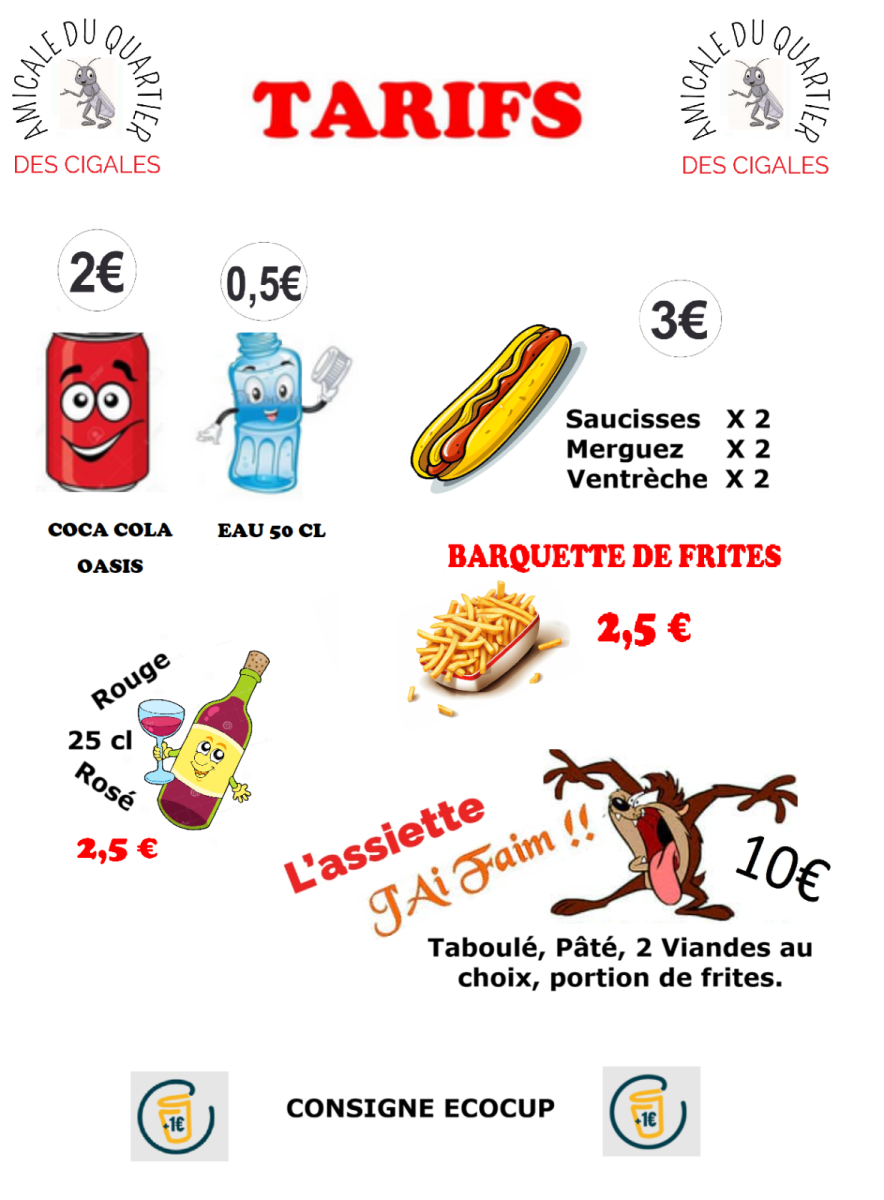 Loterijen (diverse prijzen, bioscoopkaartjes "la ferme florale de Camille")