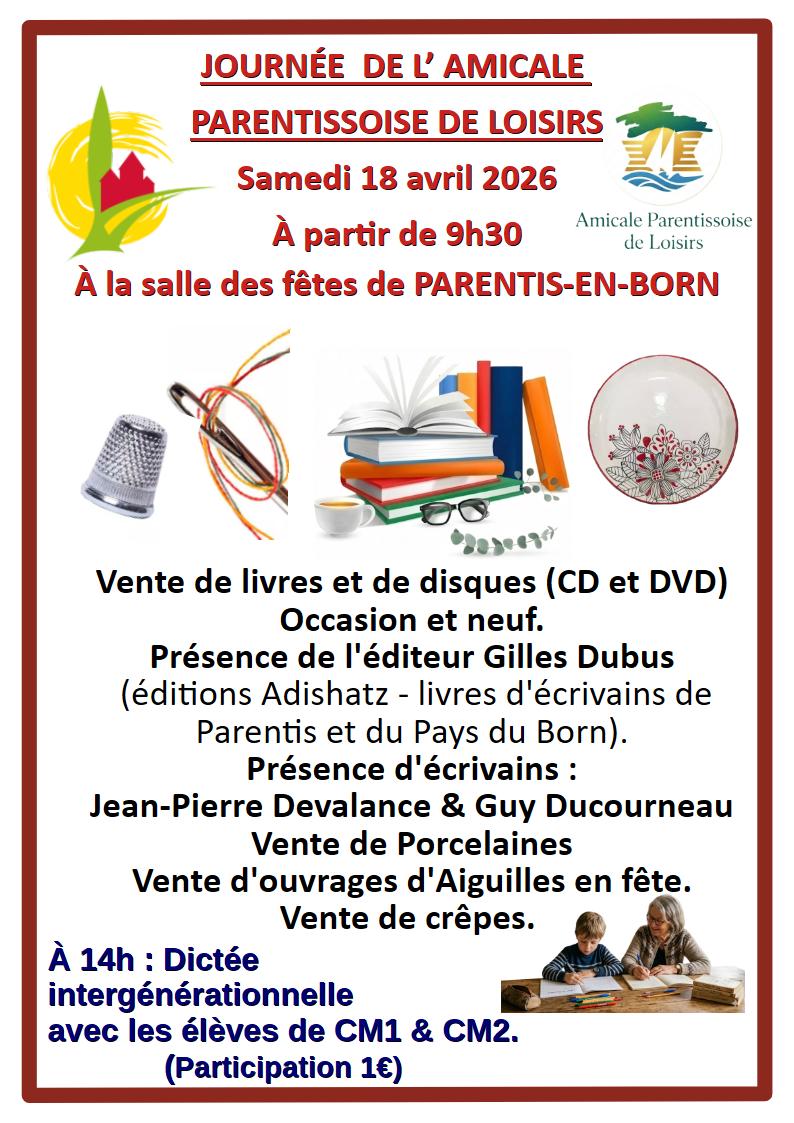 - Gilles Dubus, uitgever (Editions Adishatz - boeken van schrijvers uit Parentis en het Pays de Born) zal aanwezig zijn