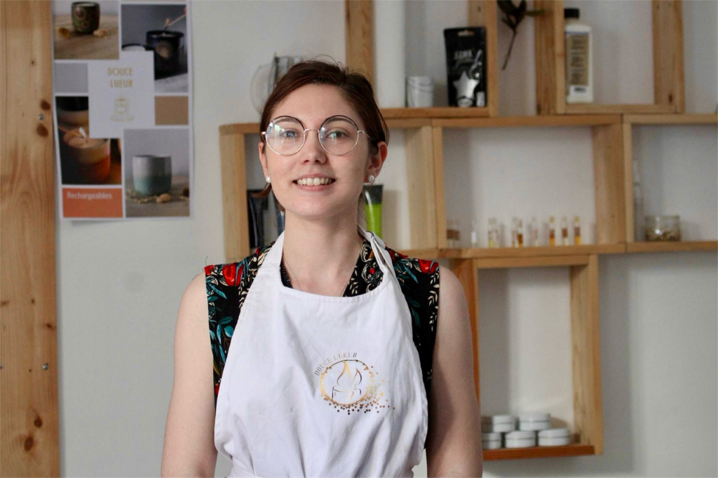 In haar atelier-boutique in Tyross is Justine begonnen met het maken van handgemaakte, hervulbare kaarsen, ontworpen om lang mee te gaan en afval te verminderen. Ze geeft ook creatieve workshops voor kinderen, tieners en binnenkort volwassenen. Douce Lueur wil een gemeenschap creëren rond lokale ambachten en een meer circulaire manier van consumeren.