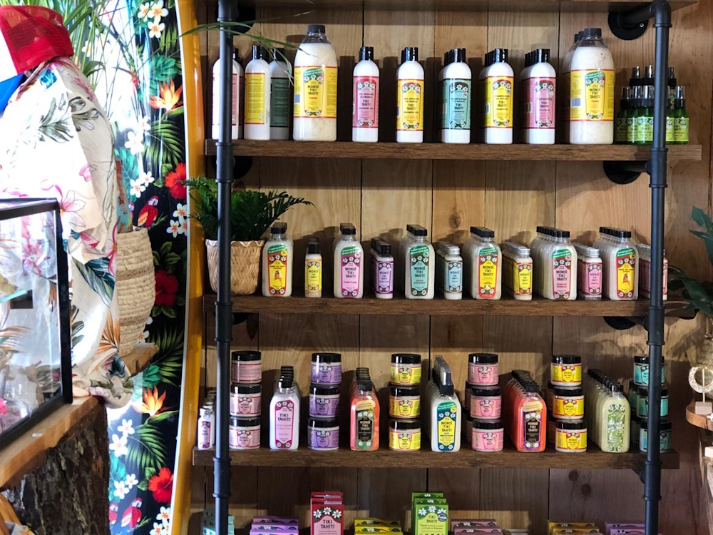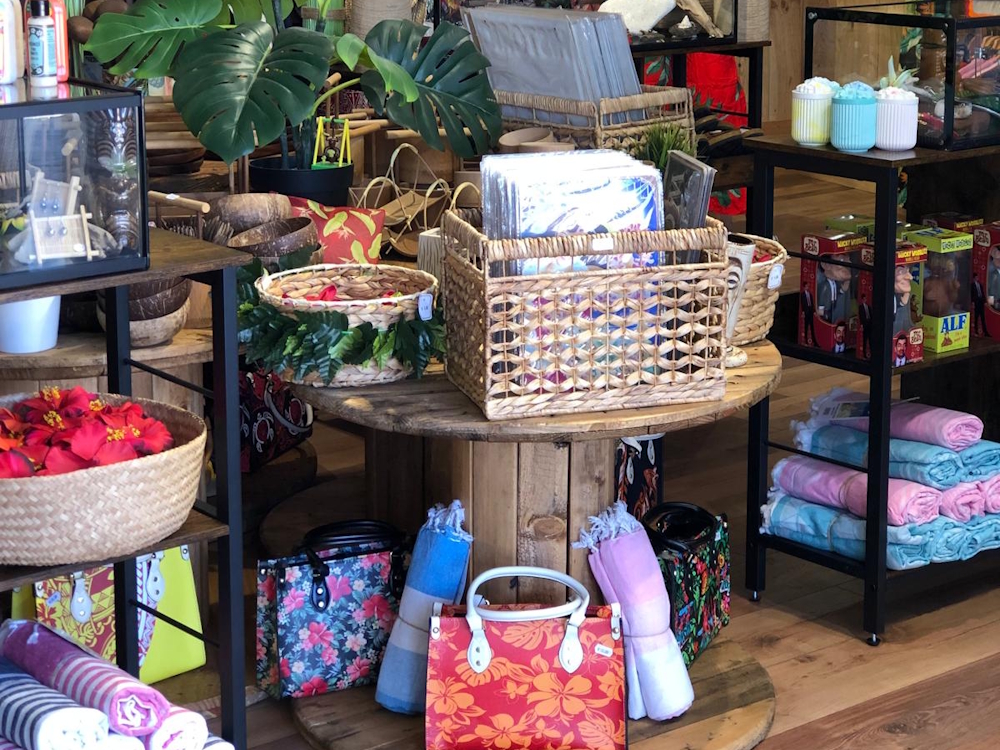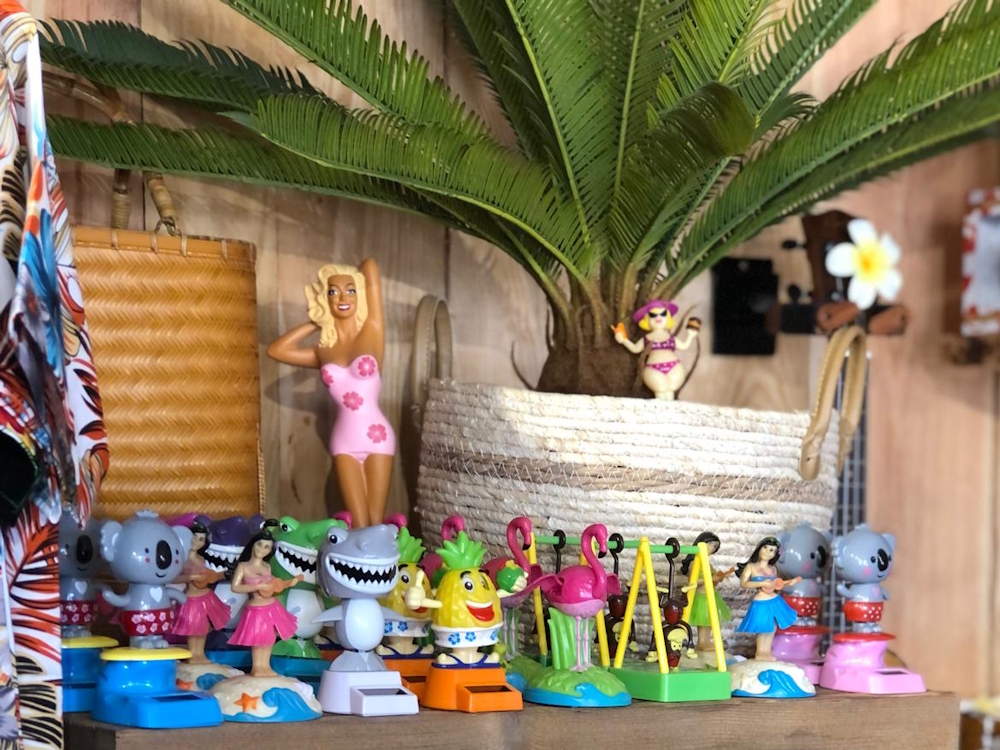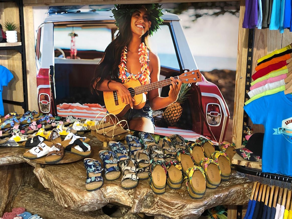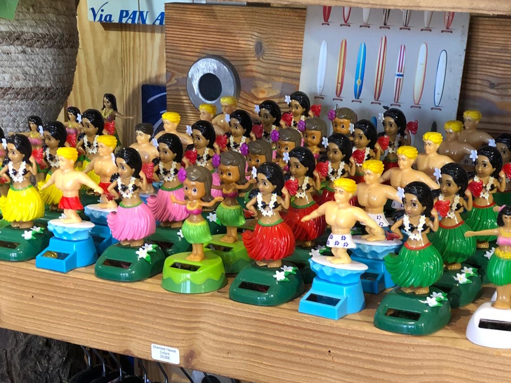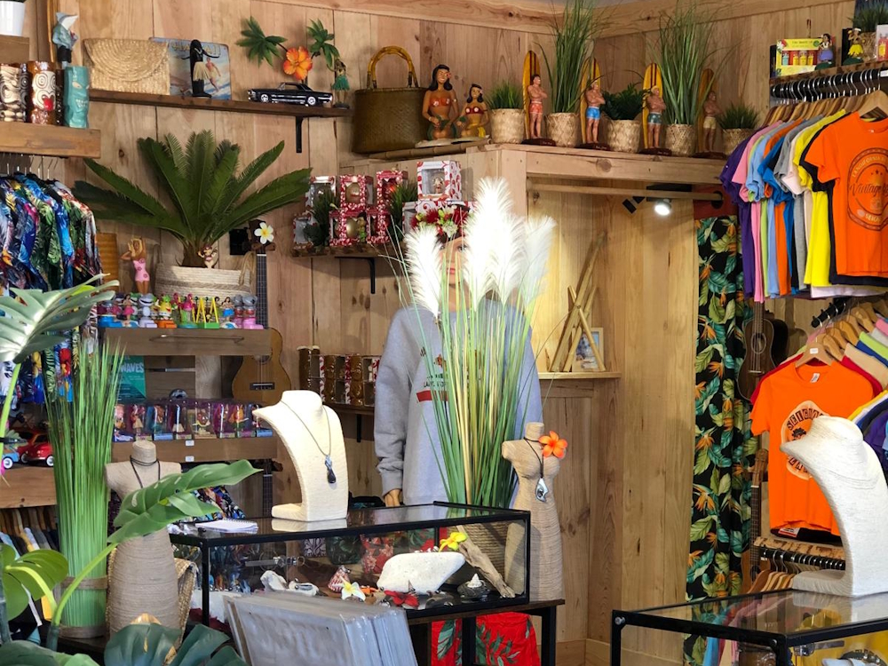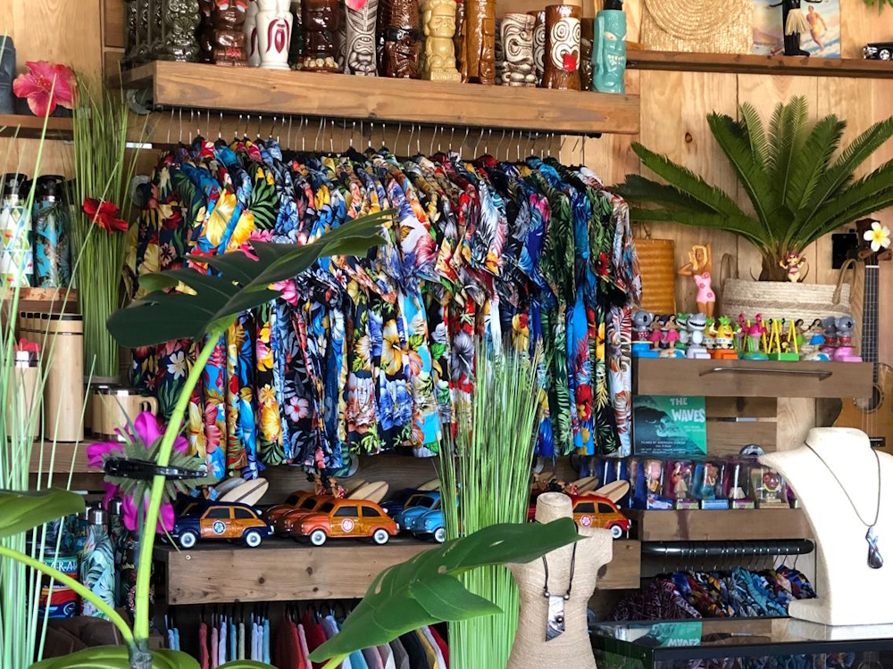 In onze winkel en op onze website vind je een breed scala aan zwemkleding, strandlakens, slippers, T-shirts van Landifornia en Vintage Island's, Vintage Hawaiian shirts, stof uit Hawaii, Tahitiaanse parelsieraden, monoï en zonnecrème, haaraccessoires, kostuumjuwelen en diverse decoratieve artikelen gebaseerd op de Surf, VW, Tiki en Vintage cultuur.