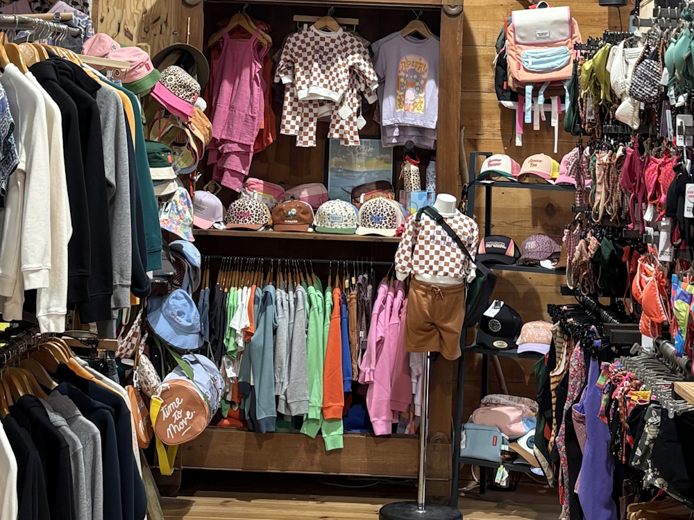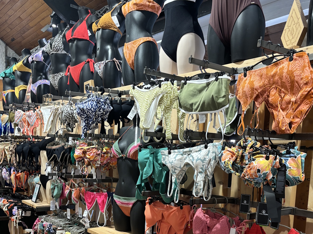 Een enorme keuze aan kleding met iconische merken (RVCA, Banana Moon, Volcom, Santa Cruz, enz.), badmode en strandaccessoires.