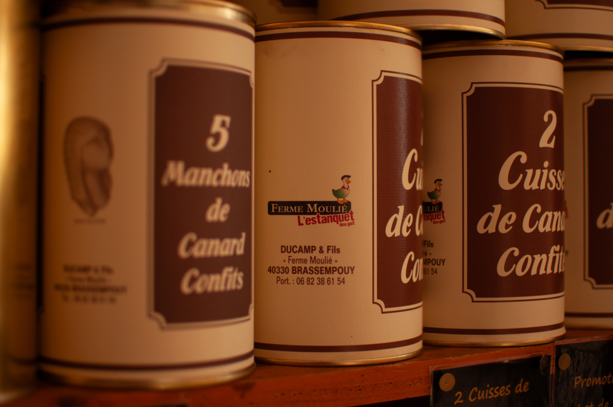 In de buurt van ons huis in Chalossaise biedt onze winkel u onze hoeveconserven, evenals producten uit het zuidwesten van onze bevriende producenten: Amagnac, floc, wijnen...