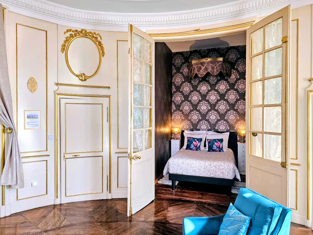 De kamer "La Royale" neemt je mee terug in de tijd met zijn decor en architecturale kenmerken, die doen denken aan een van de suites in het kasteel van Versailles. Met een oppervlakte van 40m² (inclusief 1 tweepersoonsbed en 1 slaapbank) werd deze kamer blijkbaar ontworpen om Napoleon III te huisvesten in het dorp.