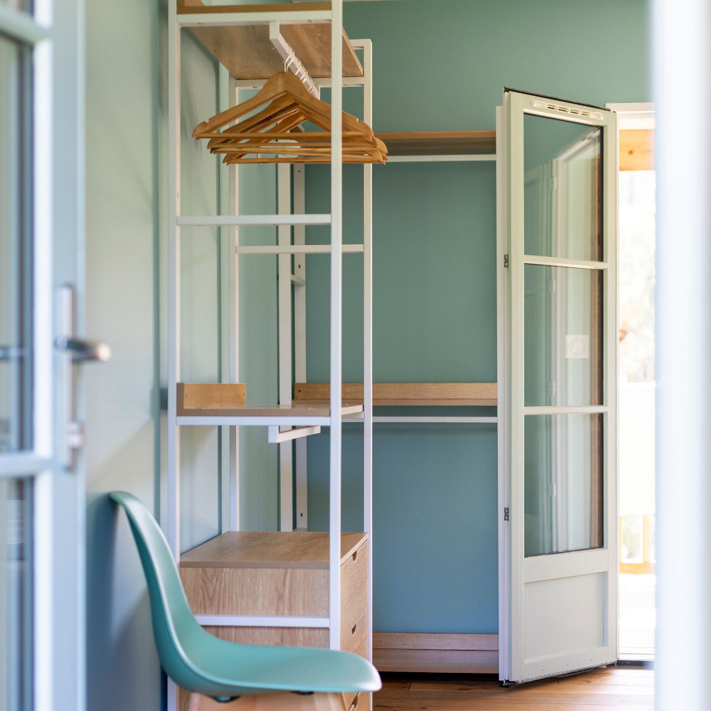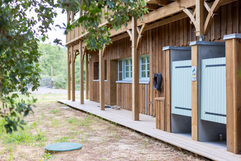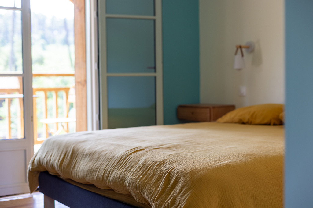 Op de verdieping zijn de 4 slaapkamers bereikbaar via een buitentrap: elke slaapkamer heeft een eigen badkamer, toilet en een terras met tafel en stoelen. Voorzieningen: katoenen lakens, handdoeken, toiletpapier, wattenstaafjes, douchegel, shampoo en haardroger.