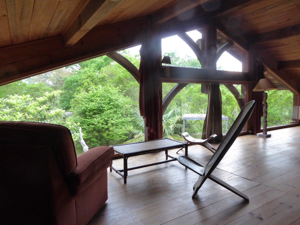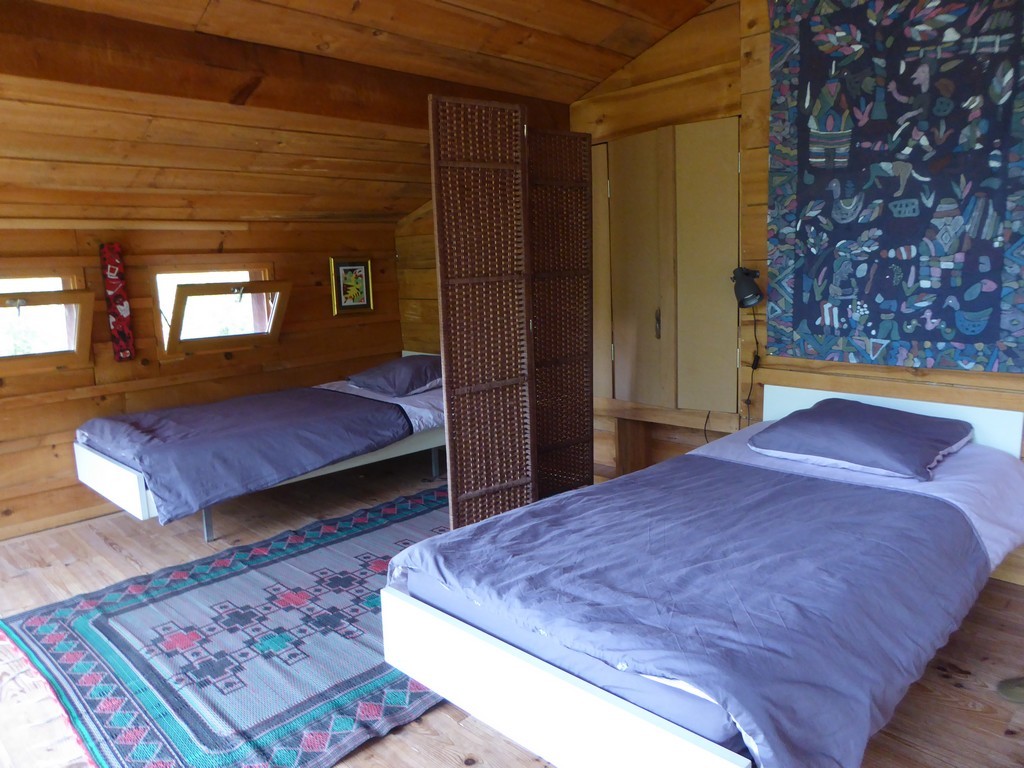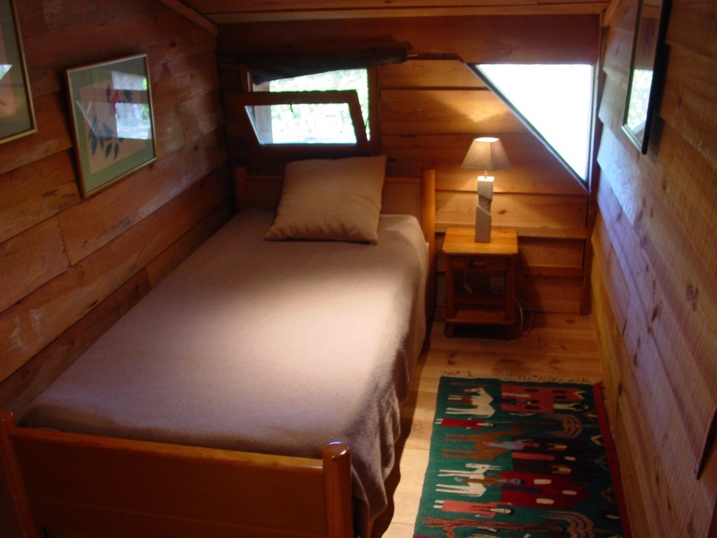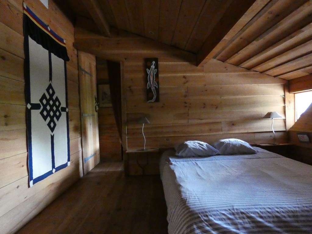 De andere 2 slaapkamers zijn boven. De eerste (slaapkamer B) heeft een tweepersoonsbed, een eenpersoonsbed en een kinderbedje. Het is een suite van 2 onderling verbonden slaapkamers. De tweede (kamer C) heeft een tweepersoonsbed en 2 eenpersoonsbedden, een eigen badkamer en een bureau. Het heeft een grote erker over de hele lengte en hoogte van de kamer. Het heeft een ononderbroken uitzicht.