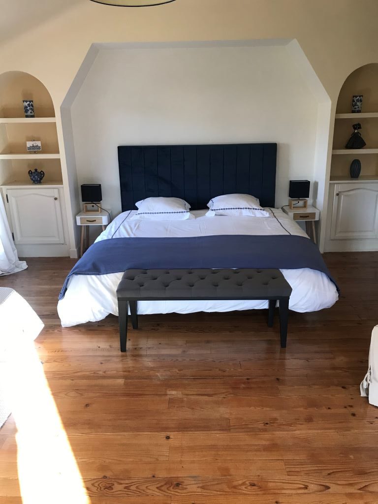 4 slaapkamers: een blauwe slaapkamer met een bed van 160 cm, een blauwe suite met 1 bed van 180 cm en 1 bed van 90 cm, een gele suite met 1 bed van 180 cm en 1 bed van 90 cm, een ouderlijke slaapkamer (2 communicerende slaapkamers) met 1 bed van 180 cm en 3 bedden van 90 cm.