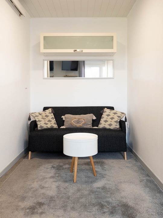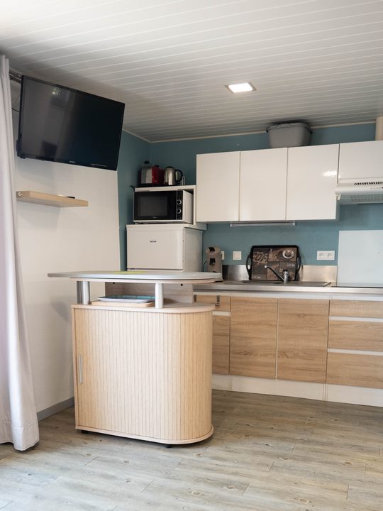 Studio met airconditioning voor 2 personen, bed van 140 cm, privéterras en parkeerplaats. Geniet van de barbecue, ligstoelen en spelletjes in onze zonnige tuin.