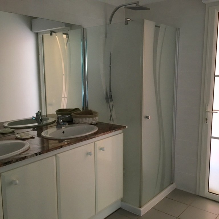 De villa heeft een grote bosrijke omgeving (+600m²) om buiten te eten en te spelen. Deze mooie villa ligt op het zuiden en heeft een grote en lichte woonkamer (+30m², hoogte onder het plafond +5m, 3 erkers), een mezzanine, een eetkamer en een volledig uitgeruste Amerikaanse keuken.