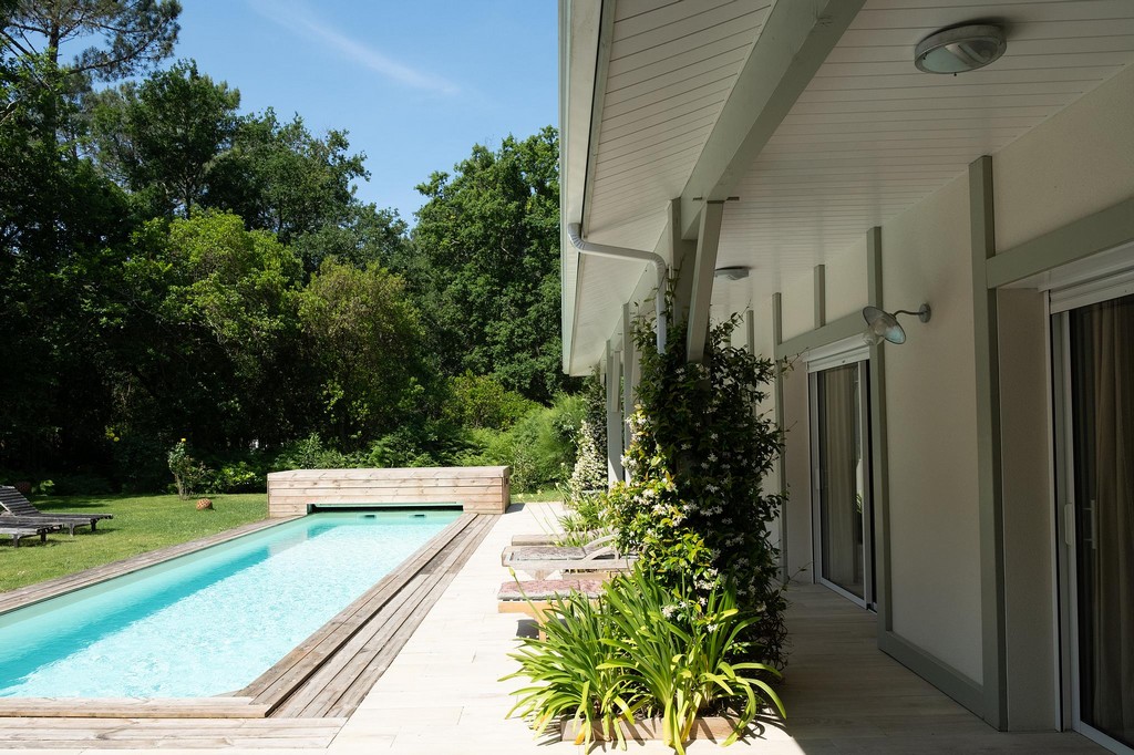 Het hele huis, gebouwd op een park van meer dan 2000 m², ligt op het zuiden/westen tegenover een verwarmd zwembad, beveiligd door een verzonken rolluik met een poolhouse, een zomerkeuken en een petanquebaan.