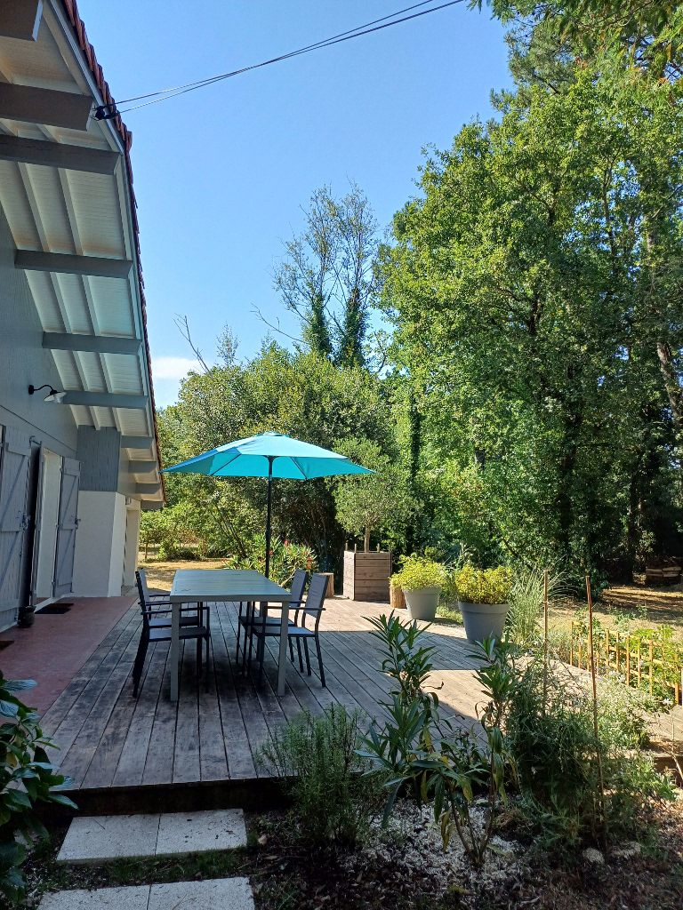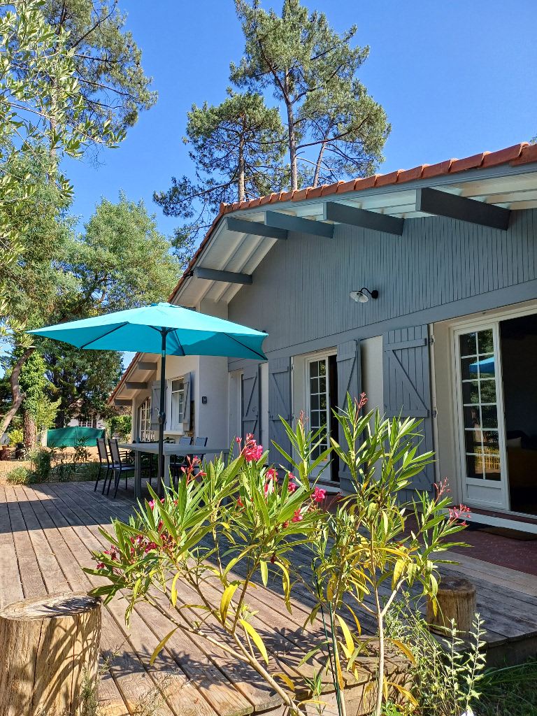 De grote, volledig omheinde tuin omringt het huis en is uitsluitend voor uw gebruik. Geniet van de terrassen, ontspan in de schaduw van de pijnbomen en laat u wiegen door de zachtheid van het bos van Les Landes.