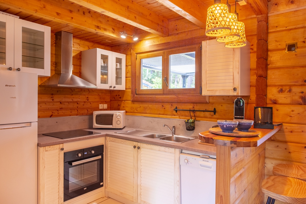 2 houten buitenterrassen, volledig uitgerust met tuinmeubilair, ligstoelen en plancha.