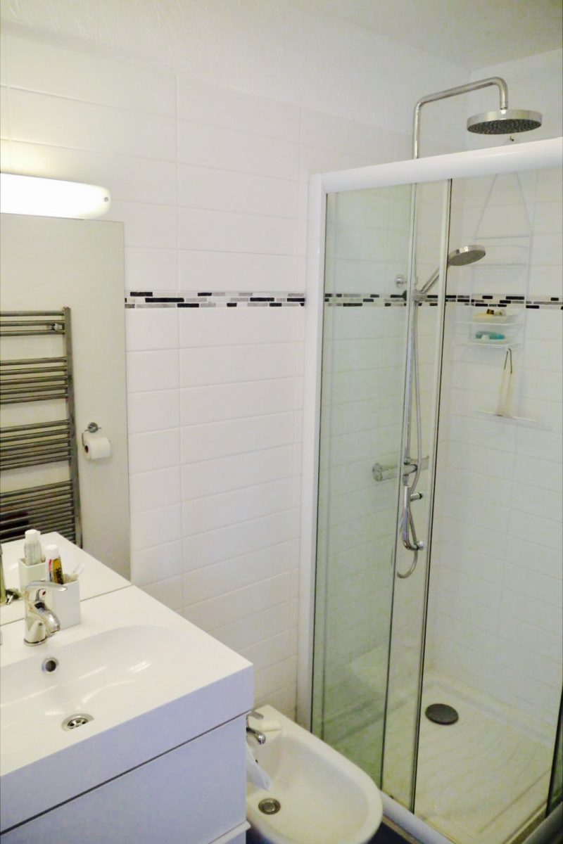 Gerenoveerde badkamer met douche, wastafel, bidet en WC