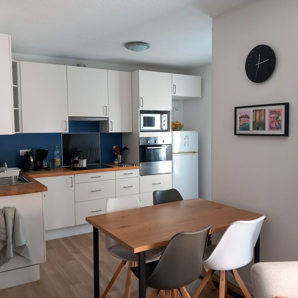 Studio 35m² 2 sterren, 2e verdieping in beveiligd gebouw met lift. Thermale baden Arena op 150m. DAX centrum op 7 minuten lopen. Winkelcentrum op 10 minuten. (3mn met de auto). Andere thermale baden in de buurt. Bushalte in de buurt. Balkon met tafel en stoelen. Grote woonkamer met slaapgedeelte, beddengoed 2x80x200, scheidbaar of aangrenzend, opbergkast. TV hoek met 2 fauteuils en salontafel. Ingerichte keuken met grote oven, keramische kookplaat, koffiezetapparaat, waterkoker, broodrooster. Elektrische apparaten zoals stofzuiger, ventilator, soepmixer, haardroger, strijkijzer, wasmachine, enz. Badkamer met douche, wastafel en opbergruimte met planken. Boodschappenwagentje beschikbaar, paraplu. Wifi glasvezel. Garage in de kelder afhankelijk van de grootte van de auto of parkeerplaats aan de voet van het gebouw. Huisdieren niet toegestaan.