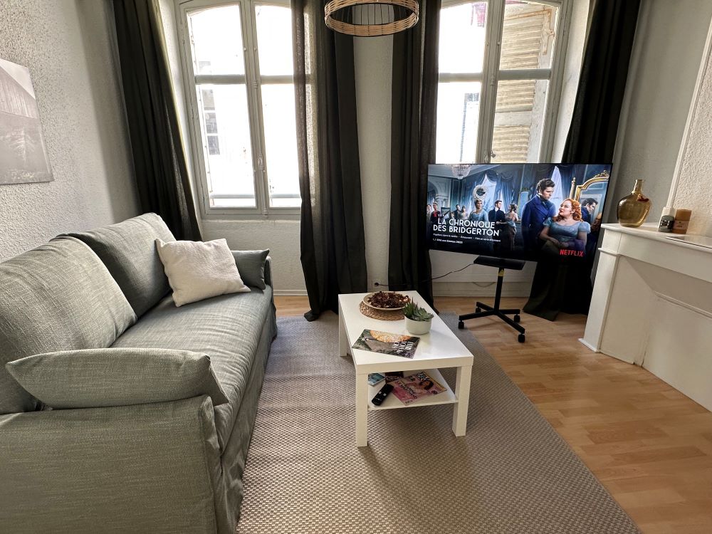 Het appartement : La Sérénité bevindt zich op de 1e verdieping van een typisch oud gebouw in het stadscentrum (geen lift) en is zorgvuldig gerenoveerd om charme en moderniteit te combineren.