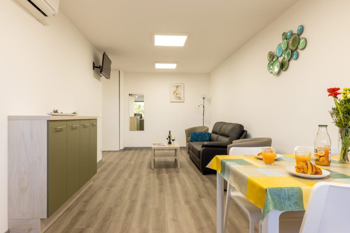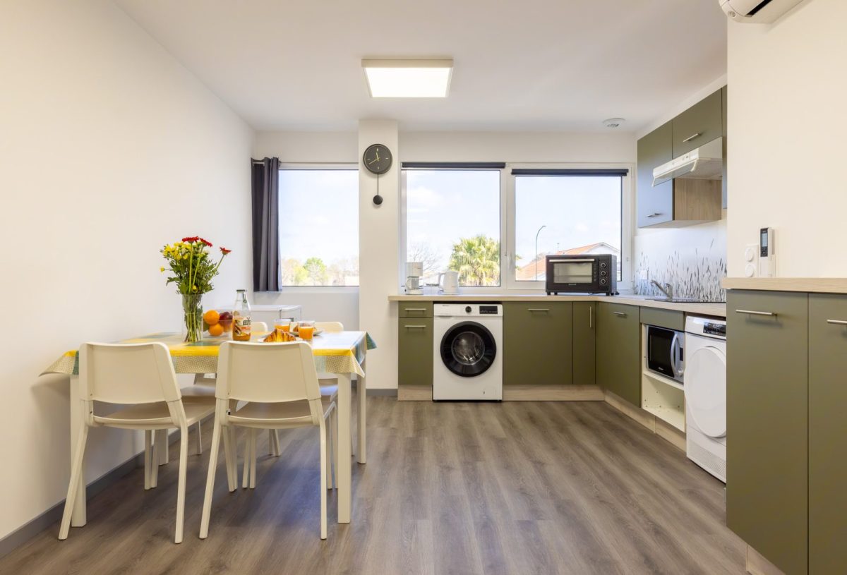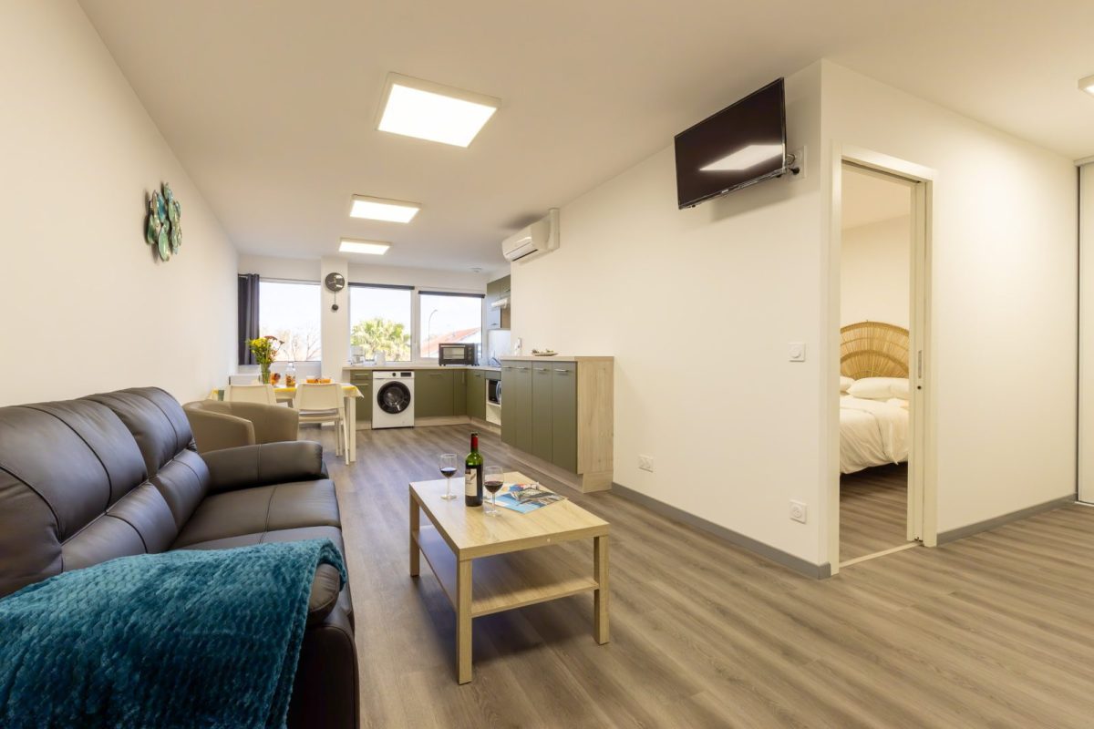 Dit gloednieuwe T2-appartement met 3 sterren bevindt zich op de 1e verdieping met lift, is met zorg ingericht en aangepast voor personen met beperkte mobiliteit, en biedt alle comfort voor een aangenaam verblijf.