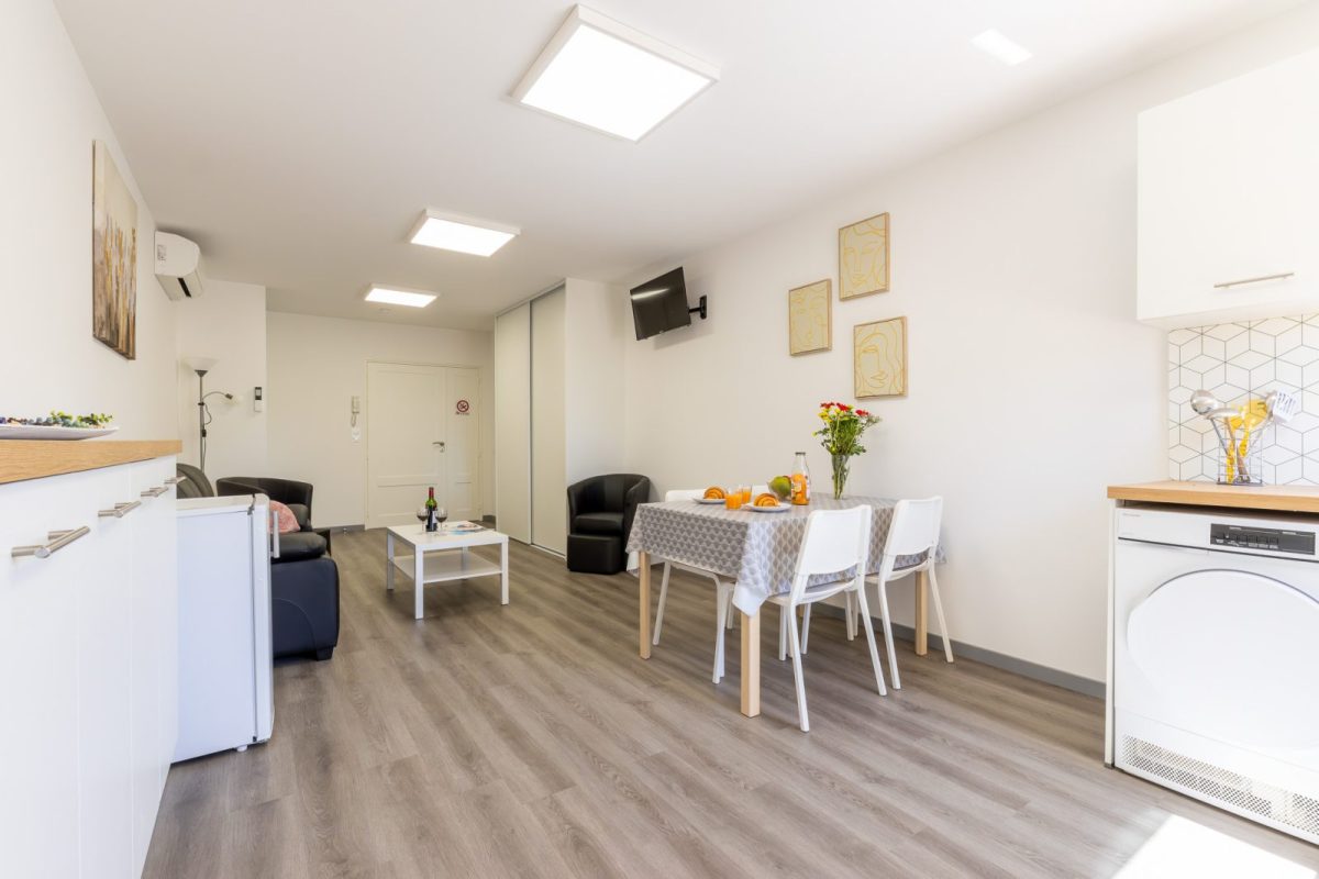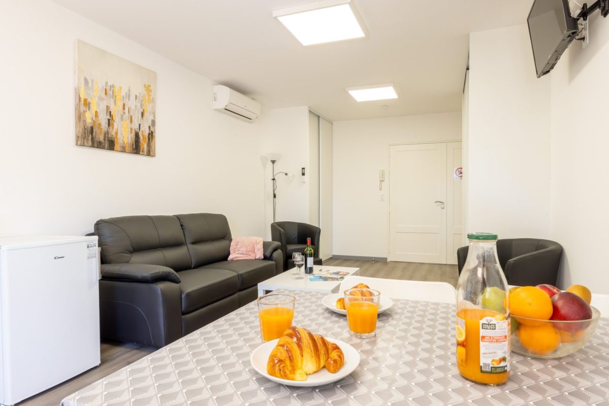 Dit gloednieuwe T2-appartement met 3 sterren bevindt zich op de 1e verdieping met lift, is met zorg ingericht en aangepast voor personen met beperkte mobiliteit, en biedt alle comfort voor een aangenaam verblijf.