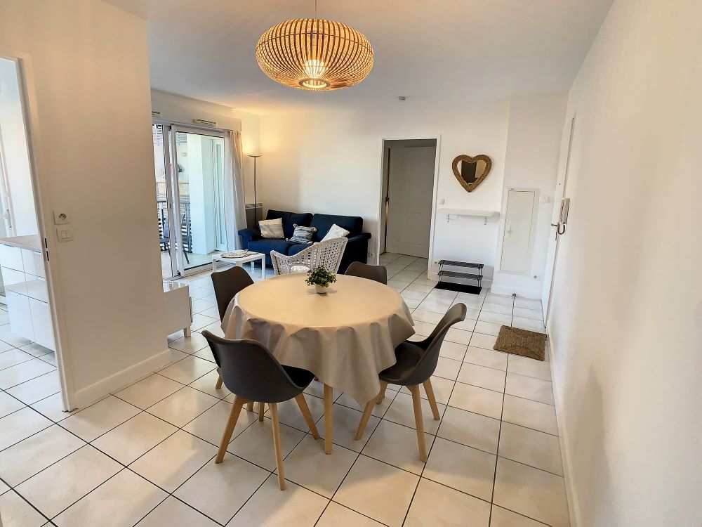 In een rustige en veilige luxe residentie, dicht bij de overdekte markt en gezondheidsinstellingen, ligt dit comfortabele 3-sterren T2 appartement, 50 m2 groot, op de 1e verdieping met lift en bestaat uit: