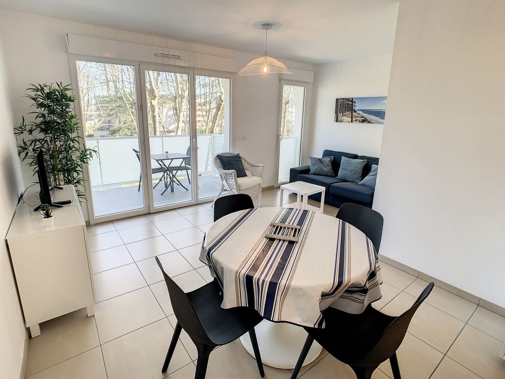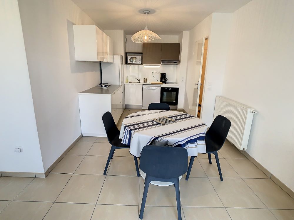 In een mooie, recente, rustige en veilige luxe residentie, gelegen op een bebost terrein, dicht bij het stadscentrum en gezondheidsinstellingen, ligt dit 3-sterren T2-appartement (43m² plus 9m² terras zonder inkijk) op de 3e verdieping met lift en bestaat uit