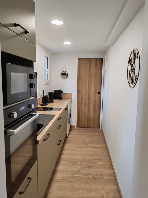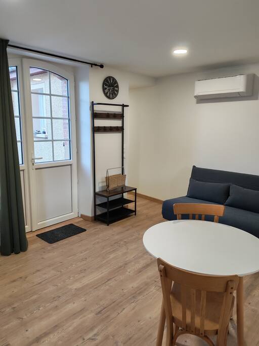 Ontspan in dit rustige, elegante appartement met eigen tuin. Nieuw gerenoveerde accommodatie bestaande uit een aparte slaapkamer, woonkamer met slaapbank, open keuken en badkamer.