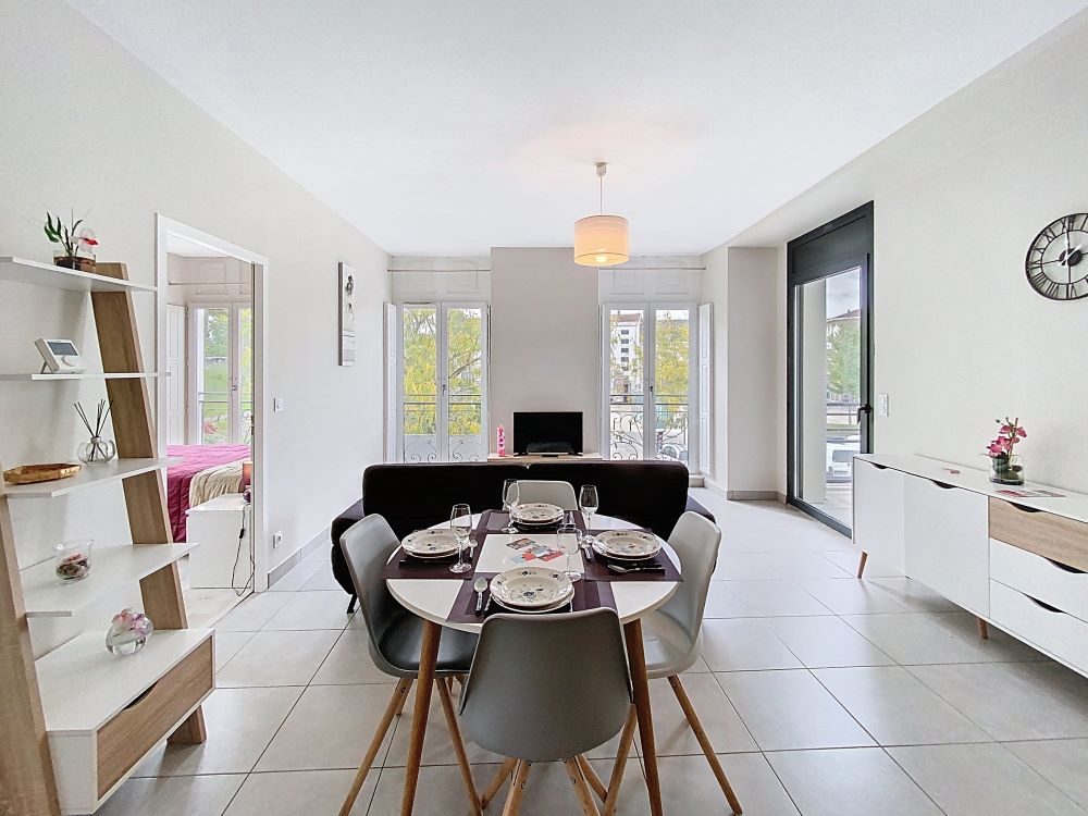 Luxe T3 appartement, gelegen op de 1e verdieping met lift, in een recente residentie in het centrum van Dax waar alles op loopafstand is, dicht bij alle voorzieningen (markten, restaurants, winkels etc).