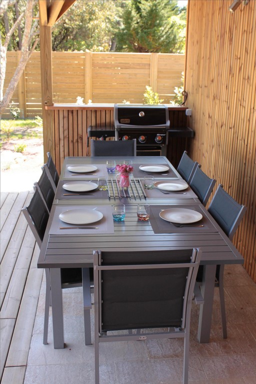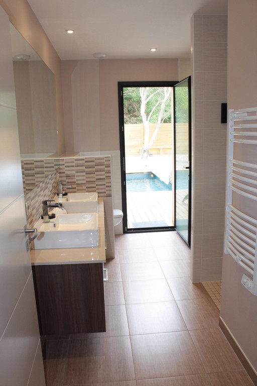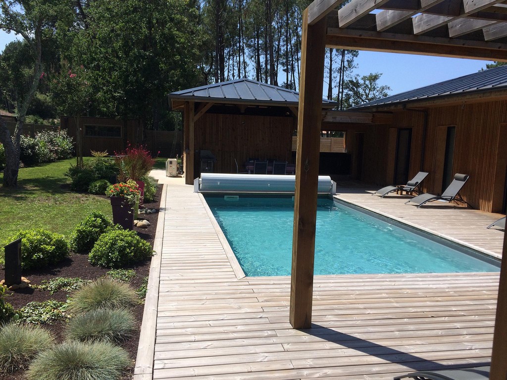 Het huis is gebouwd rond een groot houten terras en het zwembad dat in het zomerseizoen wordt verwarmd. Het zwembad is uitgerust met een elektrisch rolluik dat voldoet aan de veiligheidsnormen. Alle kamers kijken uit op deze ontspannende ruimte. Het poolhouse biedt een schaduwrijke plek bij het water om te genieten van de lange zomerdagen. Beddengoed en handdoeken zijn aanwezig. Een kinderbedje met matras, een kinderstoel en een kleine badkuip zijn beschikbaar.