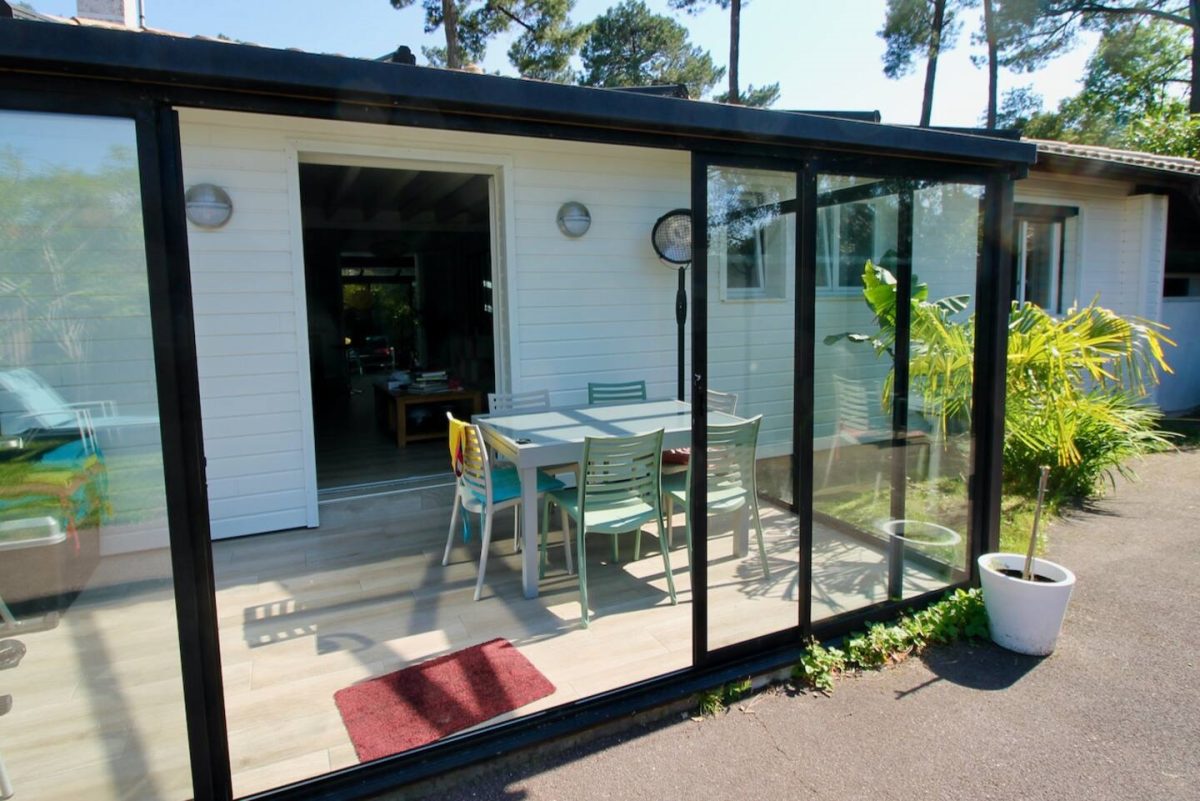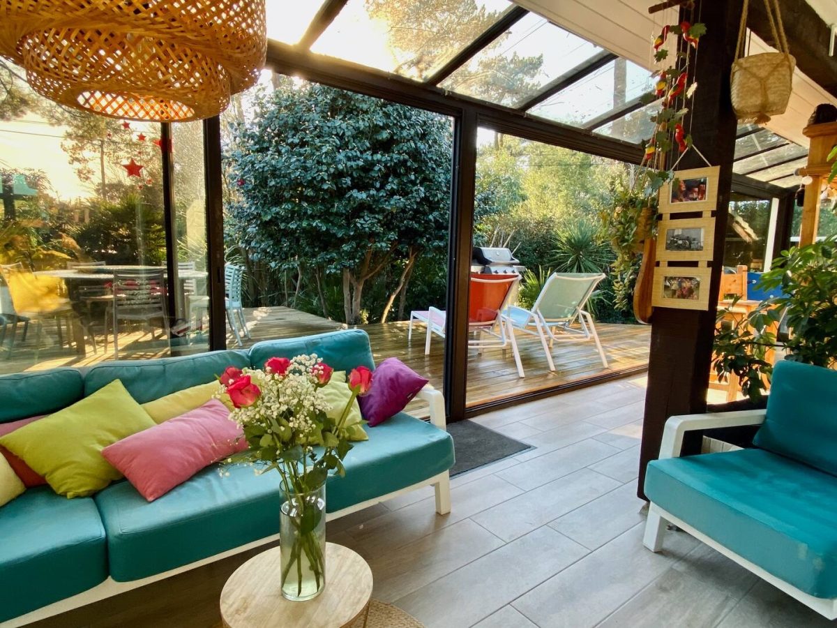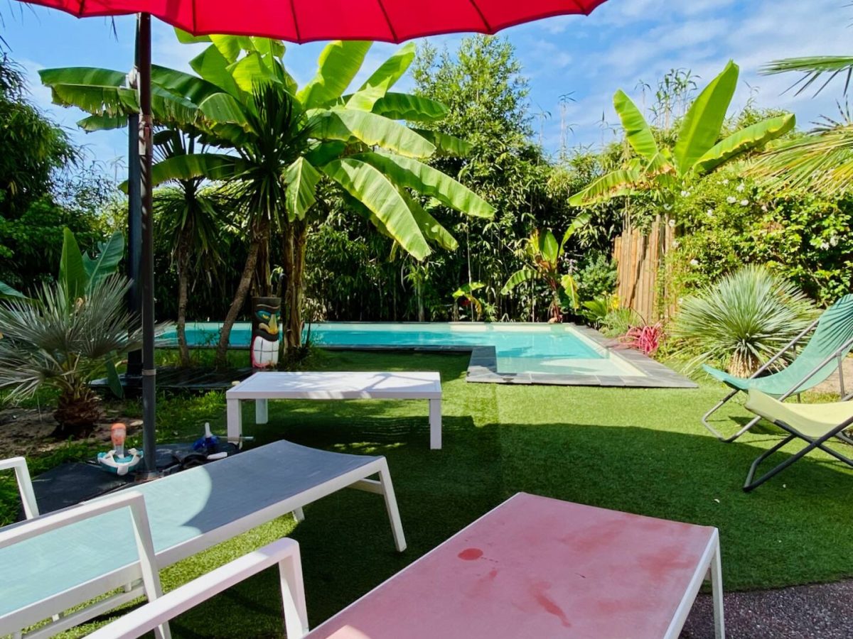 Volledig gerenoveerde Landaise villa met airconditioning en verwarmd 8x4 zwembad met strand, omringd door een exotische tuin met bomen.