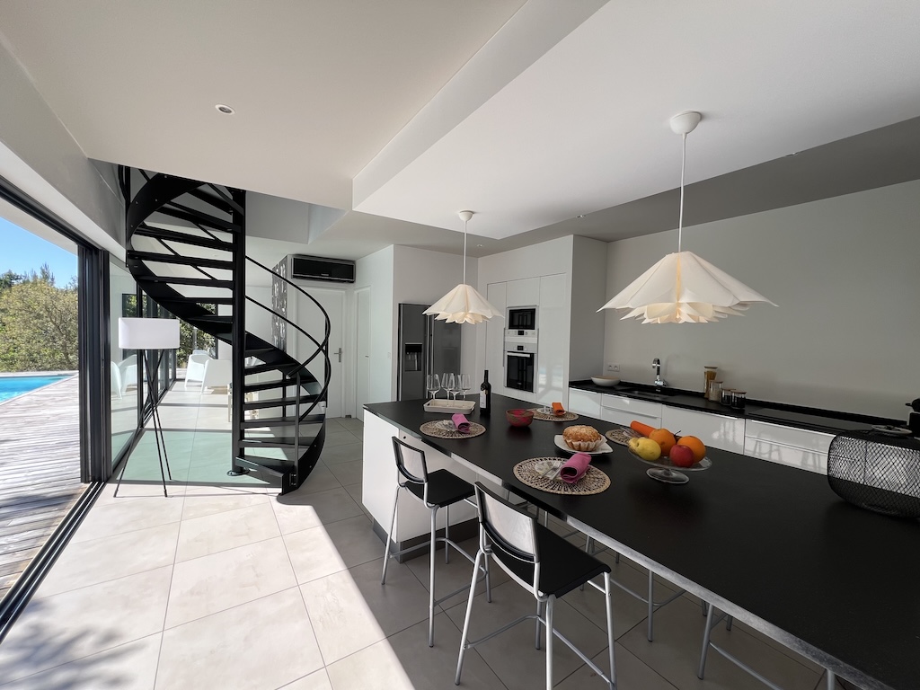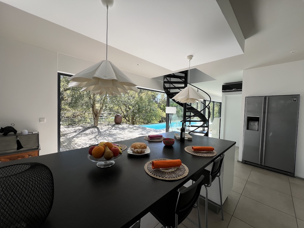Villa Stelna beslaat ongeveer 120 m² en heeft twee elegante slaapkamers op de begane grond, een moderne doucheruimte, een volledig uitgeruste keuken en een gezellige woonkamer. De woonkamer ligt op het zuiden dankzij de grote erkers, waardoor het huis baadt in natuurlijk licht en een panoramisch uitzicht biedt over het zwembad en de tuin. Op de bovenverdieping hebben twee grote slaapkamers met kleedkamers elk een eigen doucheruimte, waardoor privacy en comfort voor elke bewoner gegarandeerd is. De villa is volledig voorzien van airconditioning, met elektrische rolluiken in alle kamers voor optimaal comfort. Je zult dol zijn op het strakke design van de villa, de kwaliteitsmaterialen, de verfijnde inrichting, het uitzonderlijke licht en de vriendelijke ruimtes. Dit alles ligt in een tuin van 1100 m² en biedt rust, authenticiteit en verandering van omgeving.
