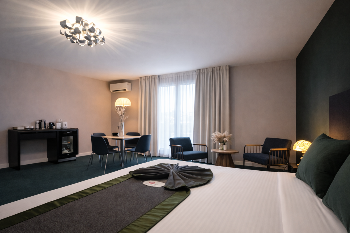 Een hedendaags hotel met achter zijn deuren een verborgen paradijs van sereniteit. Ontdek een knusse oase van rust in het hart van de stad! Geniet van de prachtige tuin met vijver en het zwembad in de zomer.