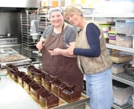 Dans son atelier, elle fabrique avec l’aide de David et avec Amour toutes sortes de cadeaux en chocolat pour toute la famille et tout âge.