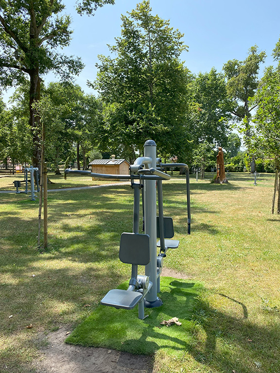 Fitnessparcours, kinderspeelplaats, picknicktafels en petanqueterrein.