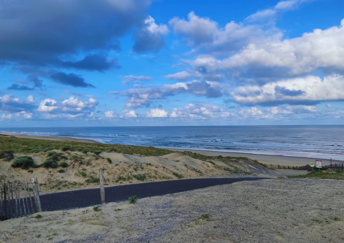 Strand van naturistencamping Arnaoutchot. Toegang via de camping onderworpen aan het campingreglement.