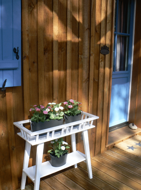 Une cabane construite par Thierry, en pin des Landes bien-sûr, et aménagée par Sylvie. La boucle est bouclée.